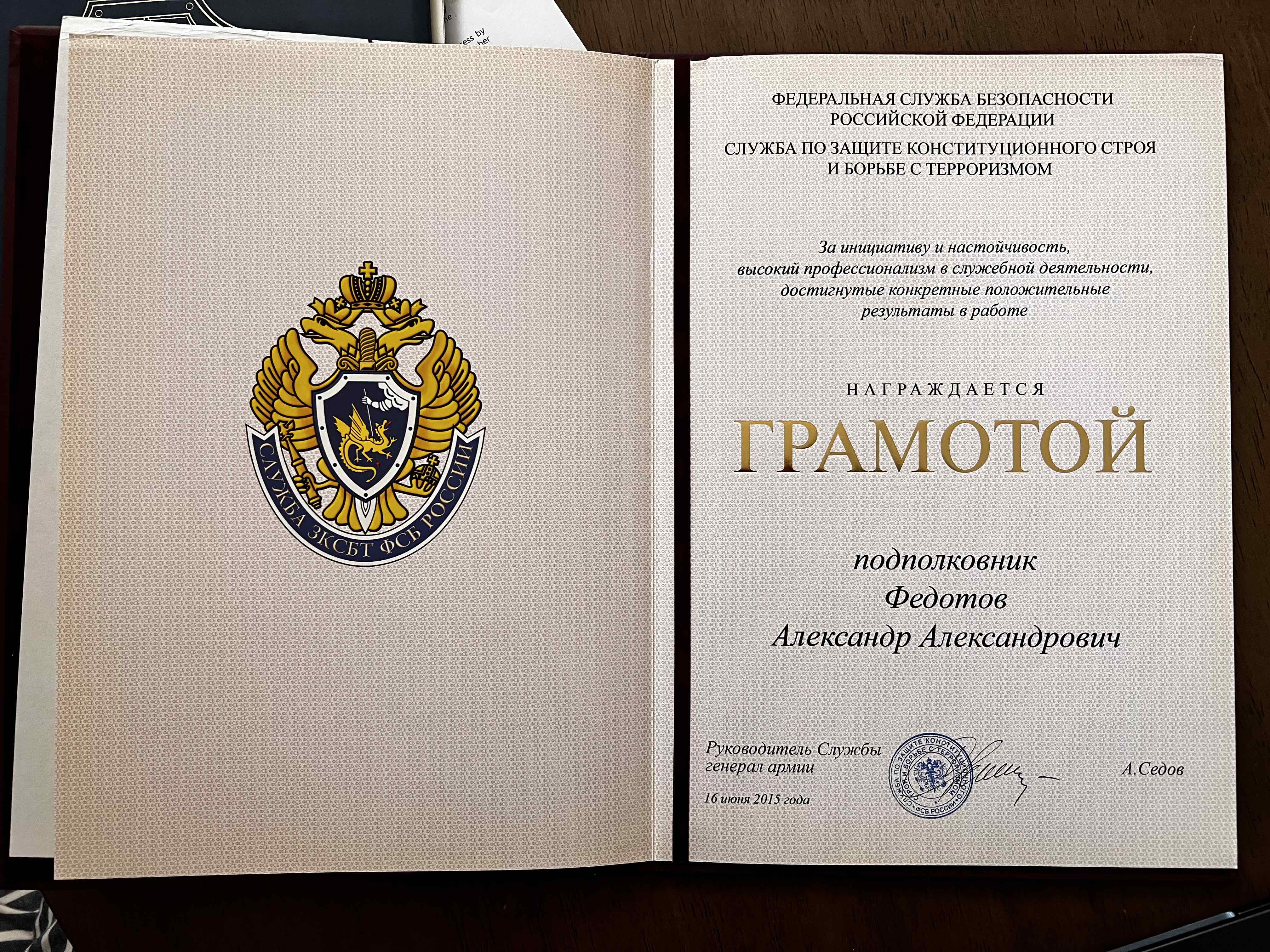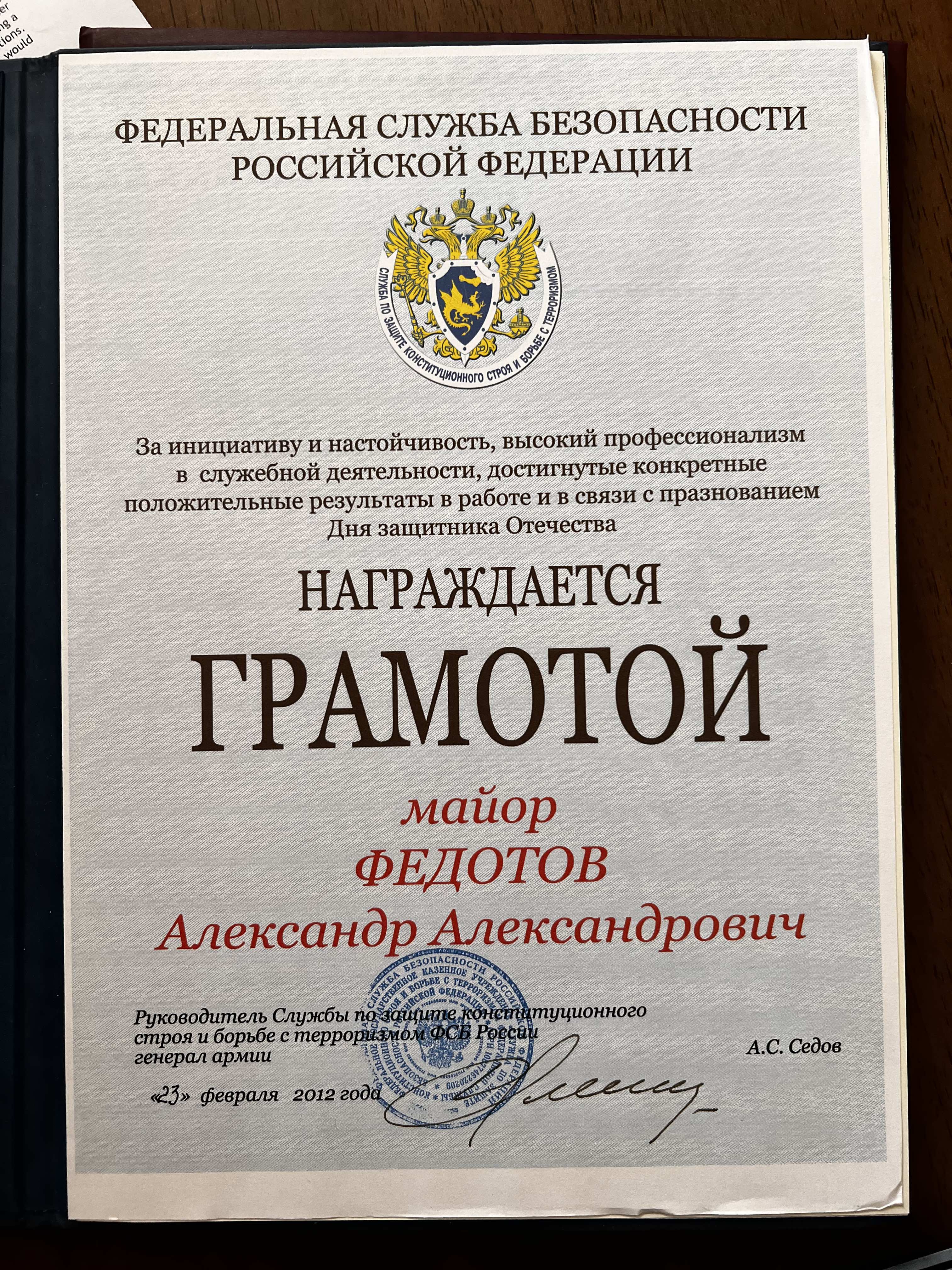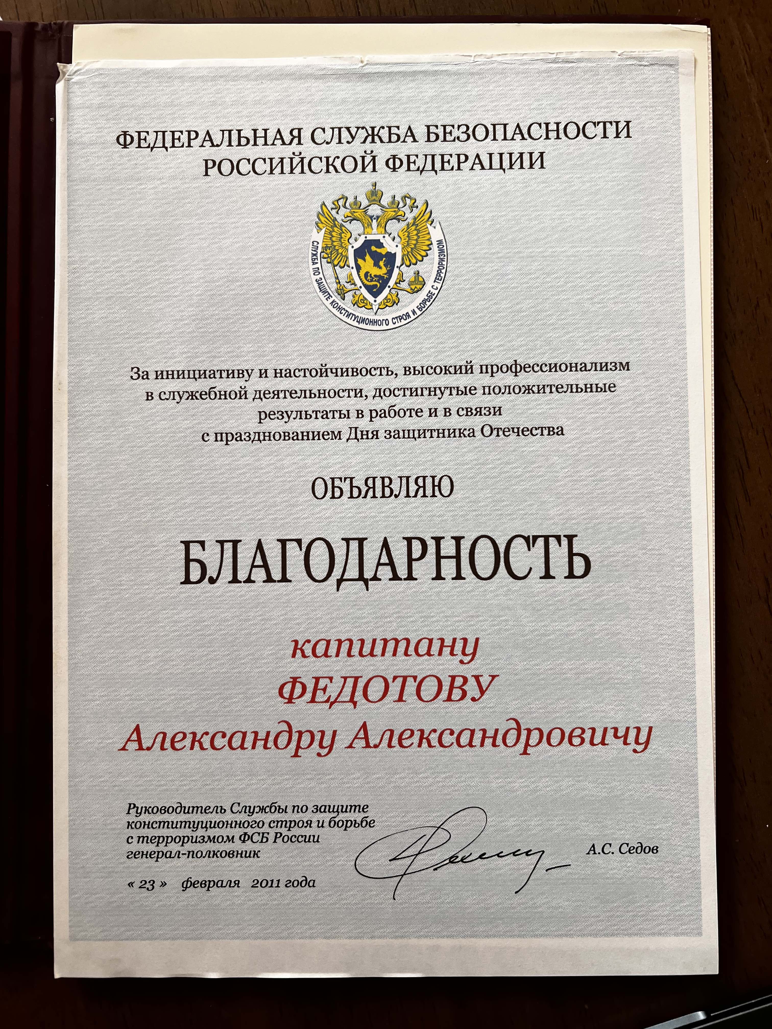 Я — Федотов Александр Александрович, подполковник, родился 30 сентября 1981 года в Москве. Мой отец, Федотов Александр Николаевич, был кадровым сотрудником ФСБ России. В систему он попал не по семейной линии — его, насколько мне известно, «подобрали» еще в университете. Дослужился до полковника, занимал довольно высокую должность, знал лично тогдашнего директора ФСБ Николая Ковалёва и многих из тех, кто в те годы начинал карьеру в московском управлении.