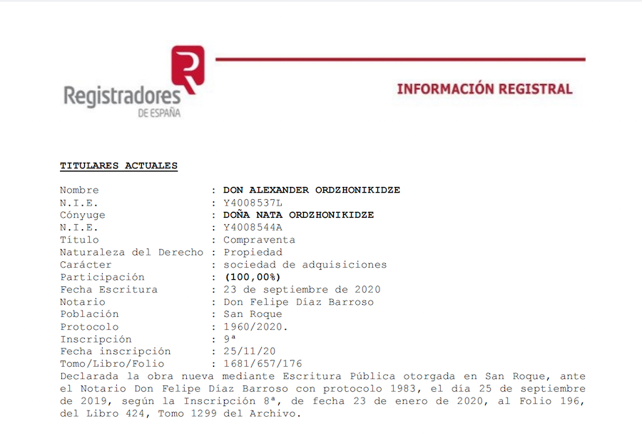 В 2020 году Орджоникидзе покупает еще одну испанскую виллу, на этот раз в Сотогранде, знаменитом курортном поселке Сан-Роке. Эти владения еще дороже — 3,7 млн евро.