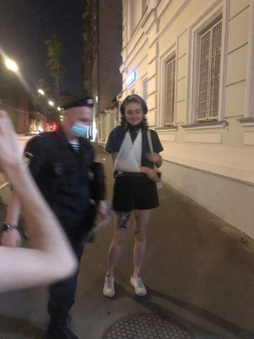 Вечером 18 июля Завьялову доставили из ОВД «Басманный» в больницу из-за жалоб на предобморочное состояние и боль в плече, после чего ее вернули обратно.