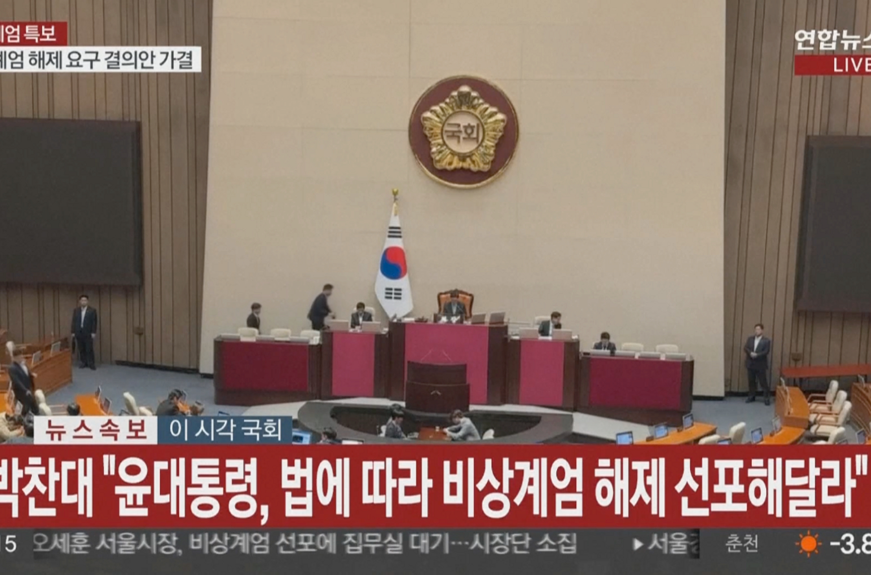 На фоне введенного режима в стране были усилены меры безопасности: улицы Сеула патрулировала военная техника, возле парламента дежурили сотрудники полиции, а спецназ занял здание, где находились около 70 депутатов от оппозиции.