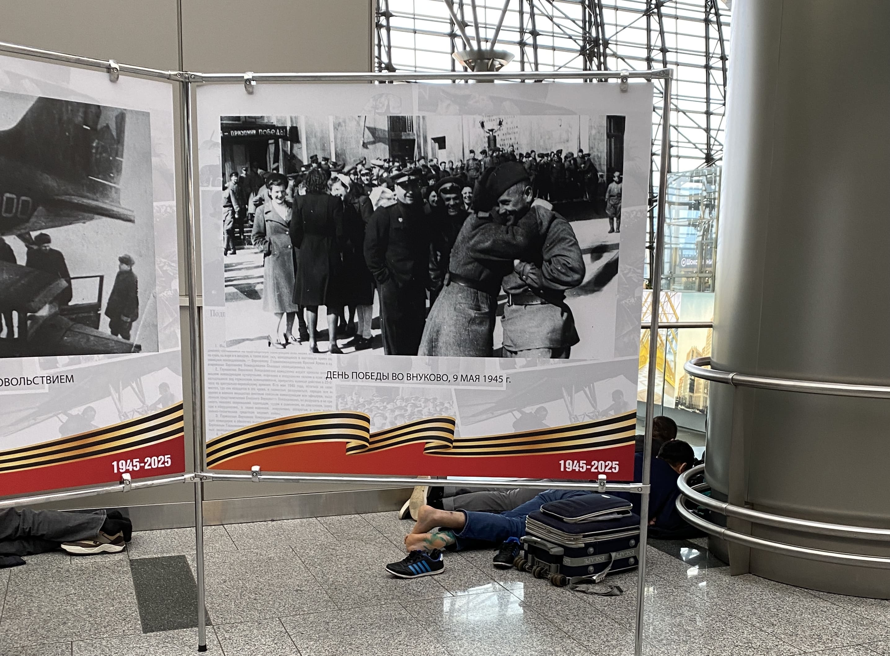 Торжества в честь 80-летия победы в Великой Отечественной войне проходят с небывалым размахом, который выражается в максимальном использовании плакатов, флагов и георгиевских лент по всему городу. Власти заставили бизнес разместить плакаты на витринах, сообщили владельцы торговых точек. «Распоряжение было из управы или префектуры. Они же предоставили материалы», — рассказывает бариста одной из кофеен в спальном районе на юге Москвы.