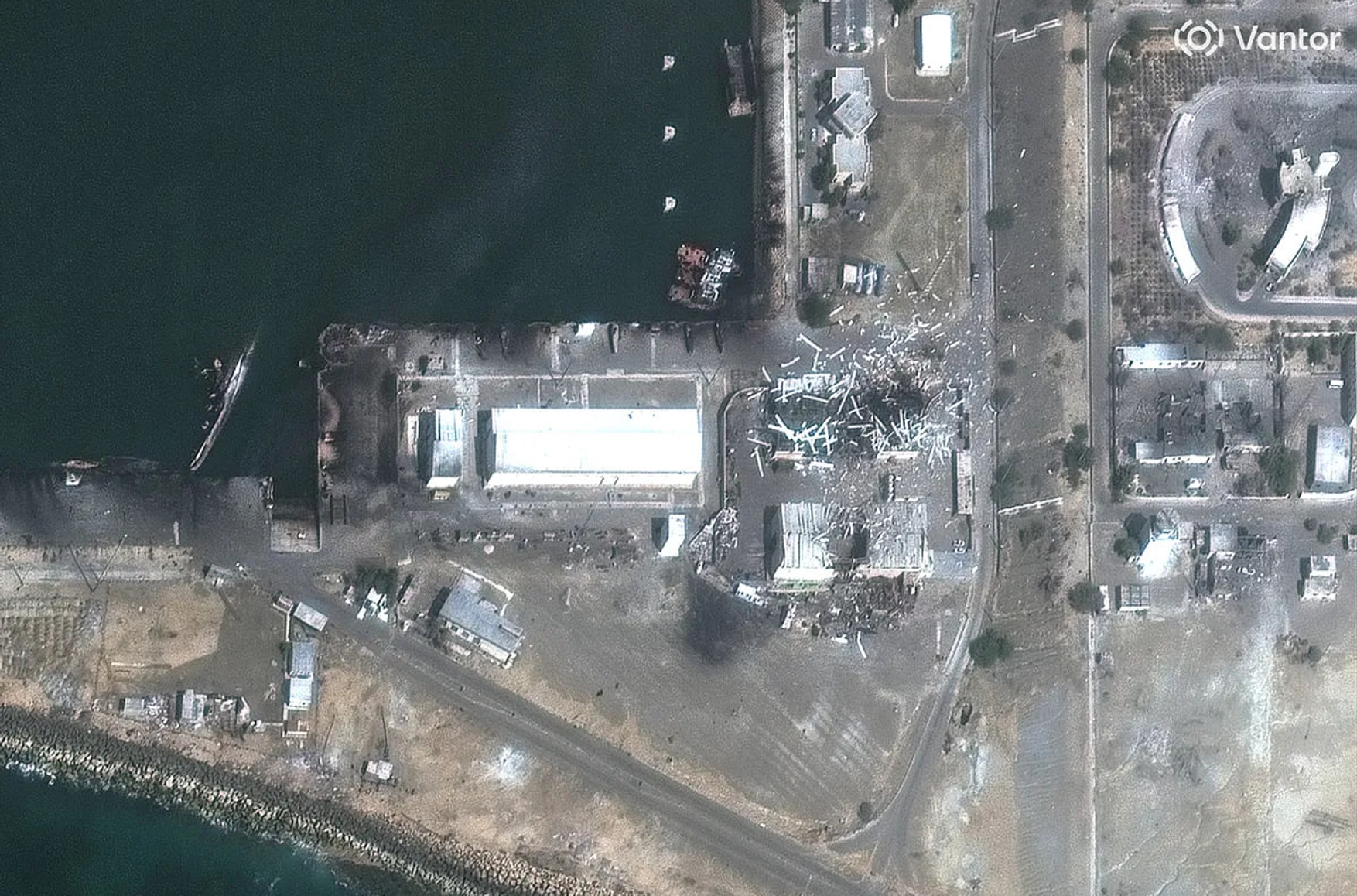 Фото: последствия удара по порту в Конараке, Иран, 1 марта 2026 года / Bloomberg / Vantor