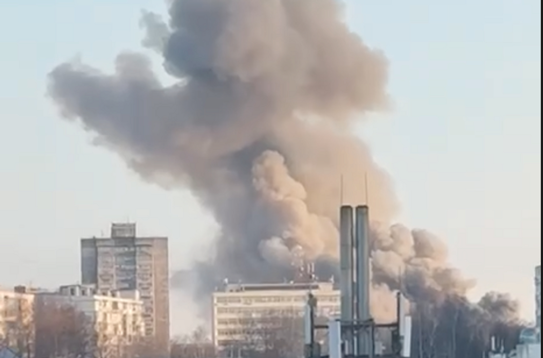 На Брянск была совершена ракетная атака, Mash сообщает, что один из ударов пришелся на завод по производству микросхем для мобильных устройств в момент пересменки, когда сотрудники собирались расходиться по домам. После атаки над городом поднялся густой дым.