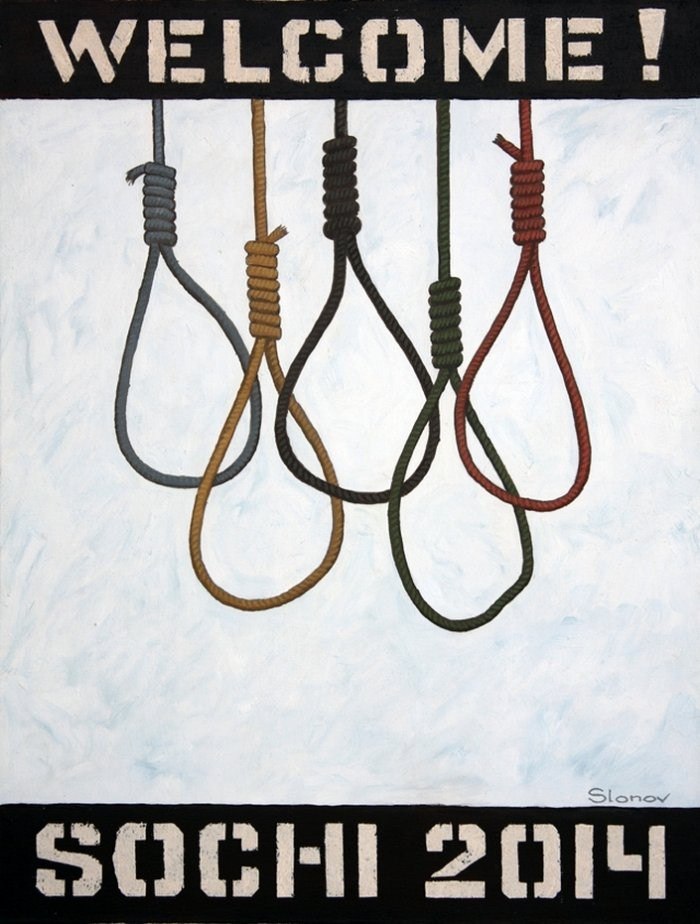 В 2014 году Марат Гельман, тогда еще директор Пермского государственного музея современного искусства, готовил выставку Василия Слонова «Welcome to Sochi». Серия работ затрагивала чувствительную историю с личным пиаром президента и спортвошингом, которым Олимпиада в Сочи и являлась.