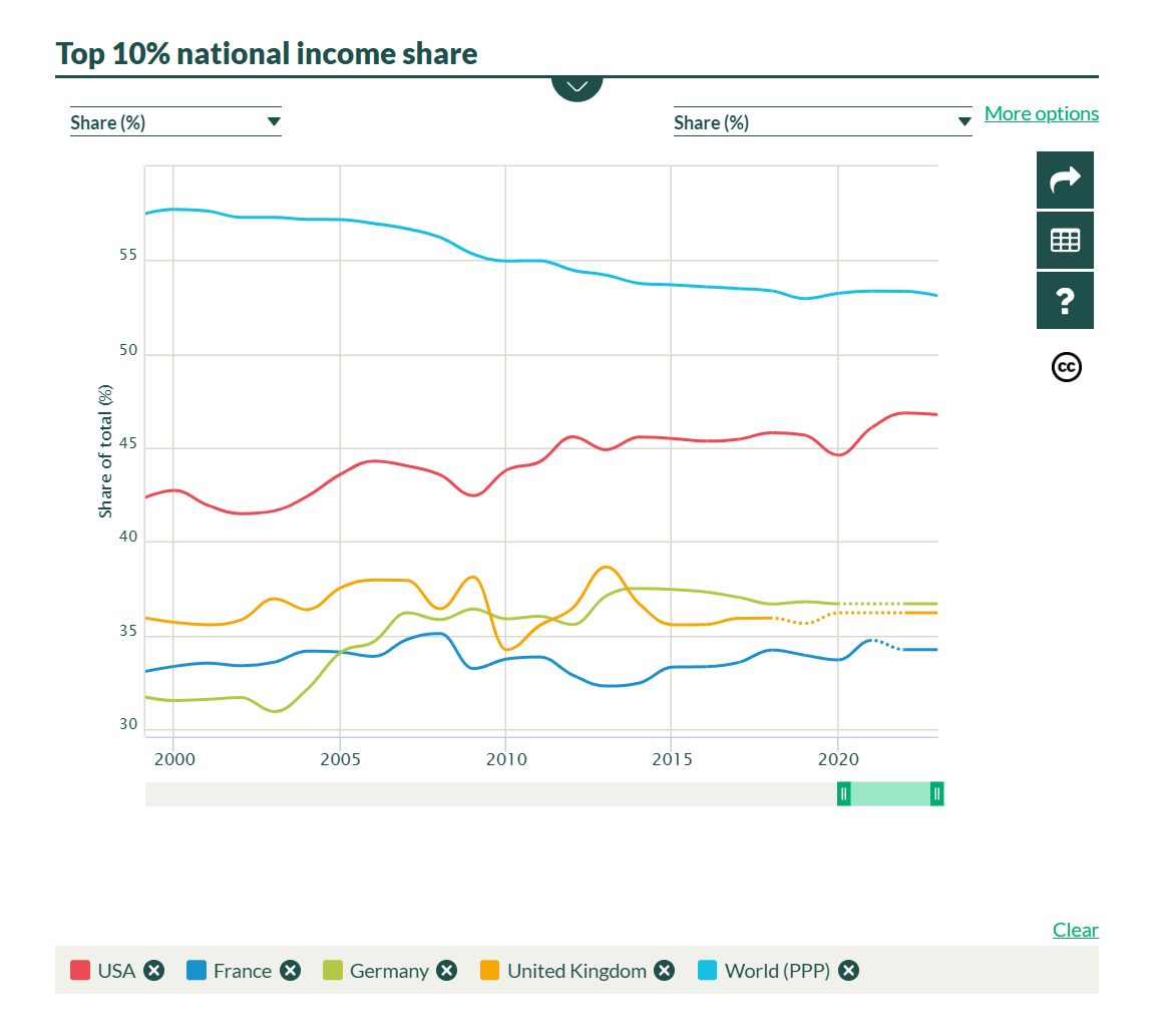 Что же касается неравенства, которое остается одной из острейших тем для таких стран, как США, то во Франции оно ниже, чем в большинстве развитых (и тем более развивающихся) стран и за последние четверть века если и выросло, то несущественно: