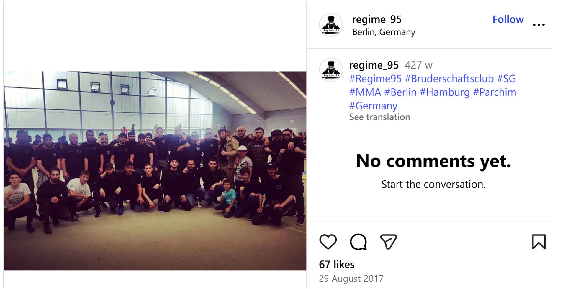 Officially, this is merely an MMA sports club, but for some reason its representatives visibly enjoy taking group photos against the backdrop of images of Al Capone and caption their pictures with the hashtag “gang.” Germany’s Federal Criminal Police Office has already taken note of this group in the context of organized crime.