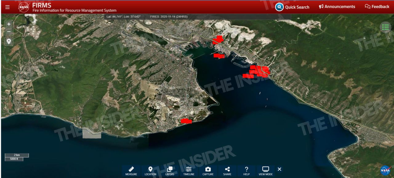 NASA’s FIRMS satellite fire-tracking system detected fires at the presumed location of the S-300/S-400 strike. It also registered three large fire hotspots in the part of the port area where oil terminals are located.