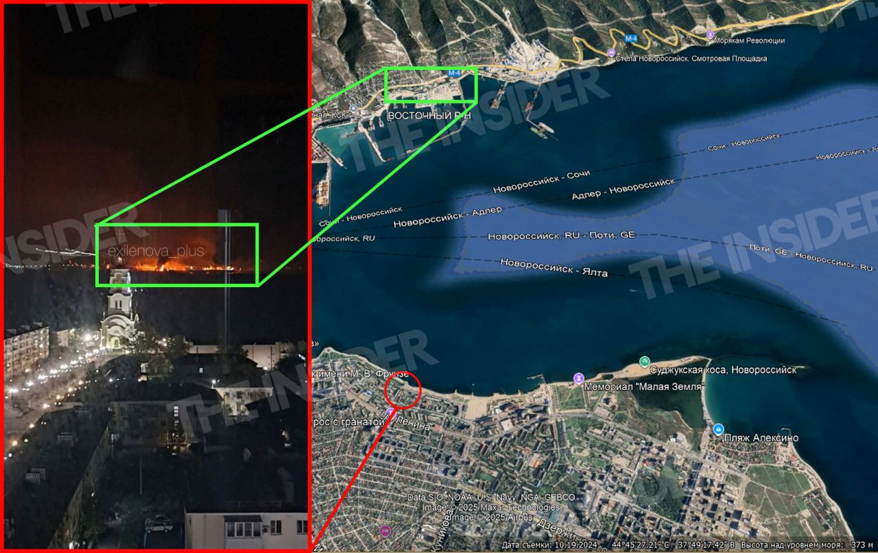The operational headquarters of Russia’s Krasnodar Region said early Thursday that a fuel depot at the Sheskharis oil terminal was damaged, and debris (1, 2) from drones fell on several apartment buildings. Officials also reported that drone fragments struck a civilian vessel in the port, injuring three crew members.