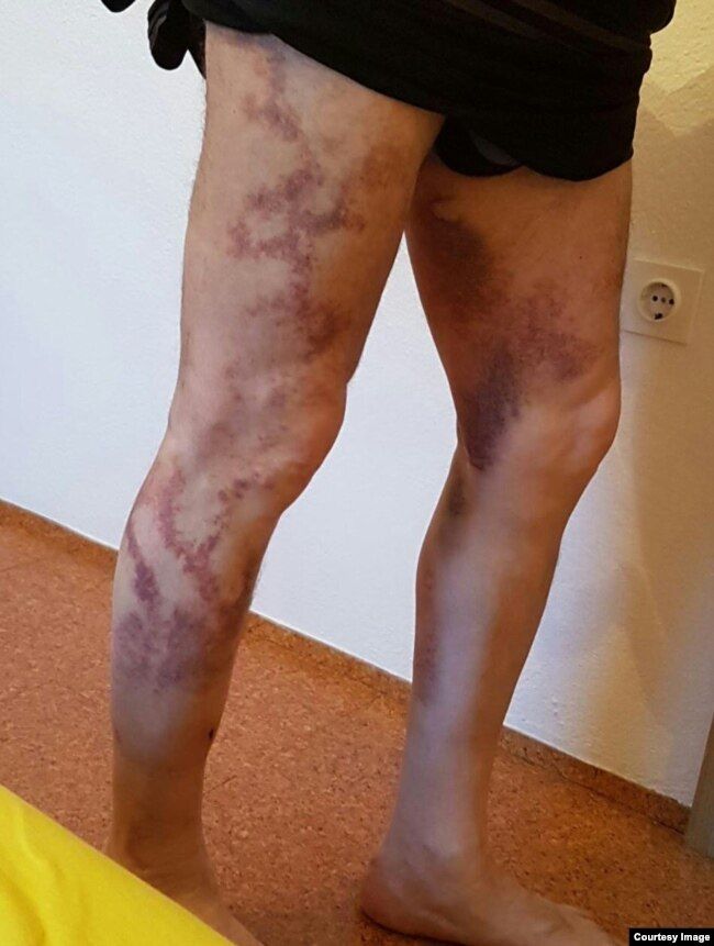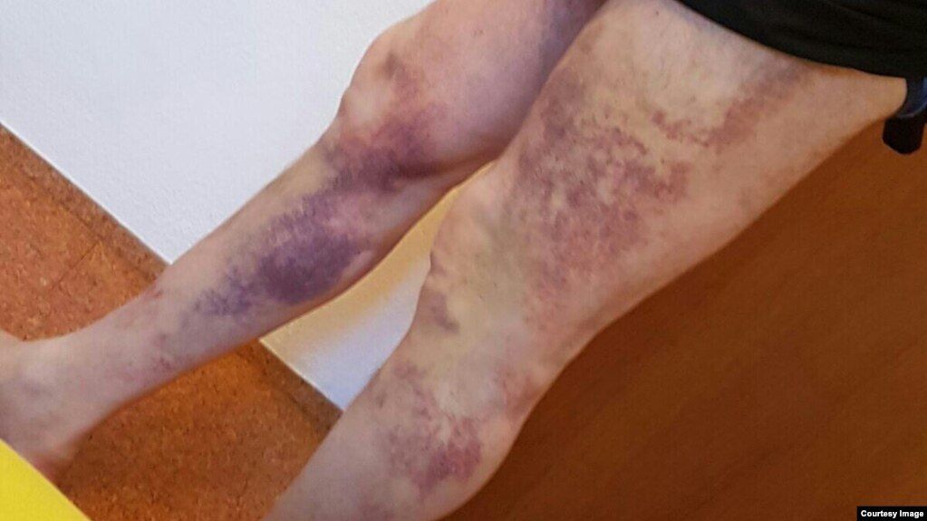 «Сначала руки положили на стол, стали подключать провода к пальцам, но, когда они включали, тело не слушалось, прыгало, крики вырывались. [Затем руки продели через спинку стула и заковали сзади.] Они хотели мне за уши провода прикрепить. У них был пистолет, они имитировали выстрел пистолета: дуло у виска — и в этот момент они бьют по столу дубинкой. Я говорил: “Да лучше застрелите уже“».
