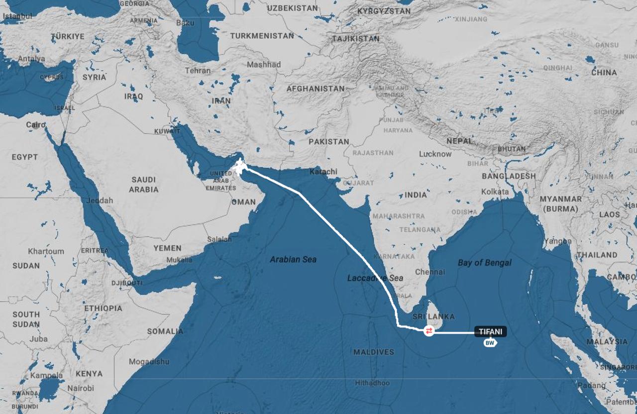 В качестве пункта назначения танкер Tifani (IMO 9273337) указал Сингапур. По данным сервиса Starboard, утром судно находилось в Индийском океане, к востоку от Шри-Ланки, а около полутора недель назад — в районе Ормузского пролива. По информации платформы TankerTrackers, с 6 апреля Tifani забрал почти 1,9 млн баррелей иранской нефти с острова Харг. Как обнаружил The Insider, в начале месяца танкер не передавал сигнал о местоположении, из-за чего его маршрут невозможно было отследить.